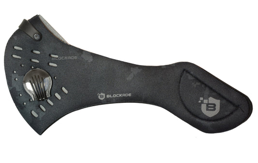 Black Camouflage Face Covering with Breathing Valves and Filter - Black Camo